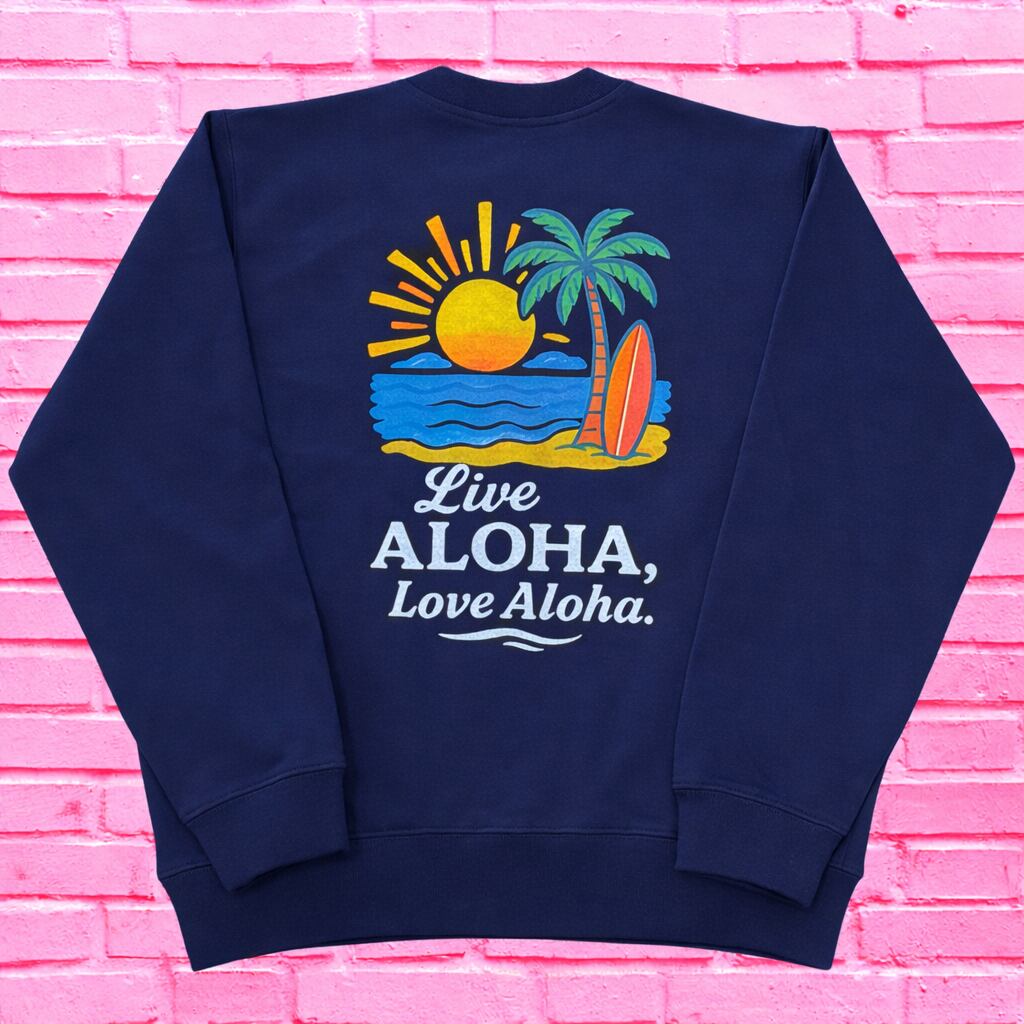 シンプルながらも存在感のあるロゴデザイン!バックプリントにハワイの雰囲気を更に感じさせる最高のトレーナーに仕上げました。